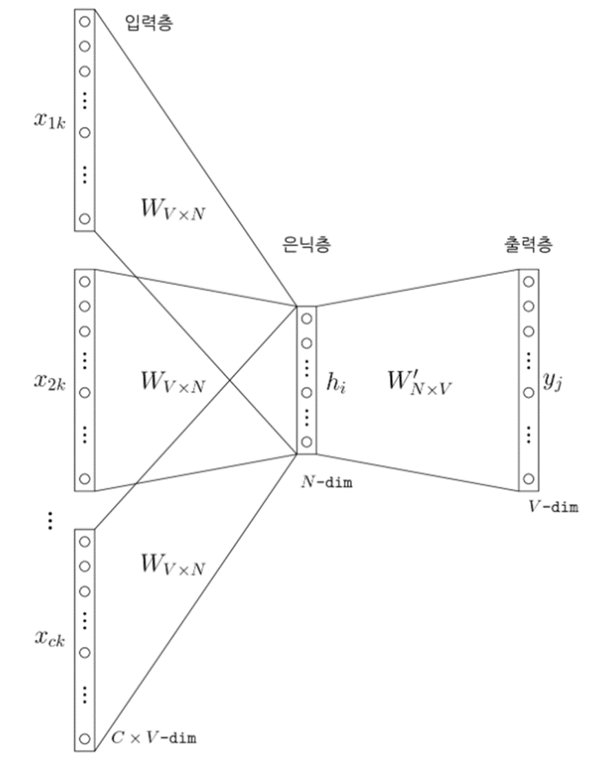 CBOW 임베딩 예시를 보면 다음과 같다.